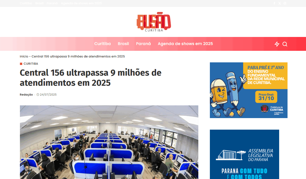 A Central 156 de Curitiba, serviço de atendimento ao cidadão, atingiu um recorde de utilização no primeiro semestre de 2025. Foram registrados mais de 9,3 milhões de atendimentos, um aumento de 22,7% em relação ao mesmo período de 2024. Os números também revelam um crescimento de 32% comparado a 2023.