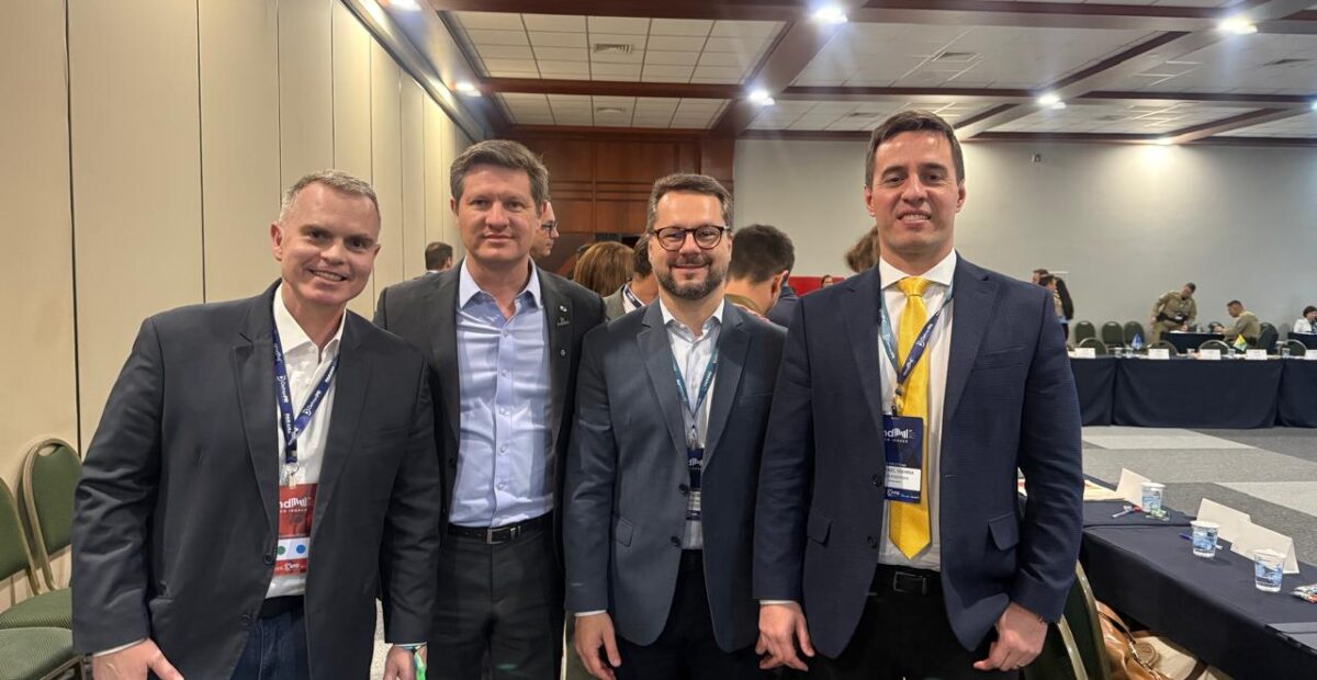 Os secretários municipais Marcelo Fachinello (Governo) e Rafael Ferreira Vianna (Defesa Social e Trânsito) participaram, nesta quarta-feira (10), do 83º Encontro Nacional dos Detrans, em Foz do Iguaçu. O evento reuniu autoridades de todo o país para debater desafios e inovações em mobilidade urbana, segurança viária e modernização da gestão pública de trânsito.