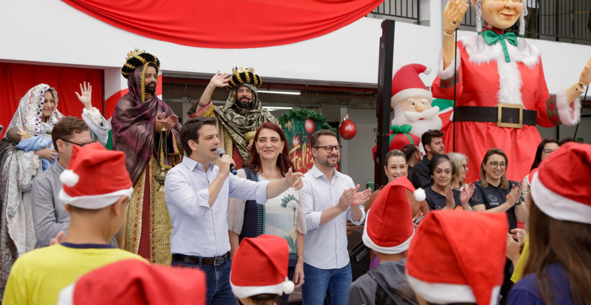 “Hoje, nós chegamos na última apresentação de Natal para as crianças em todas as regionais. E nós estamos fazendo esse Natal para vocês, crianças, para lembrarem como é importante esse momento do ano, de estar com a família, da renovação das esperanças em nossos corações, mas principalmente, lembrar que no dia 25 de dezembro é o dia do nascimento do menino Jesus. Eu quero agradecer a todas as professoras e professores aqui presentes, diretoras, diretores das escolas, CMEIs e o nosso núcleo da educação”, disse o prefeito.
